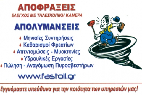 Η Fastoil Service,με έδρα το Νέο Ηράκλειο, δραστηριοποιείται επί σειρά ετών στην παροχή υπηρεσιών υψηλής ποιότητας στο χώρο των κτιρίων (πολυκατοικιών, μονοκατοικιών, επαγγελματικών χώρων, δημόσιων κτιρίων).